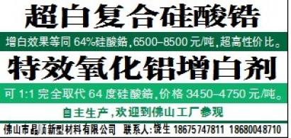 增白效果等同64%硅酸鋯,6500-8500元/吨,超高性价比。