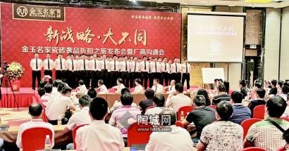 10月17日,以“新战略大不同”为主题的金玉名家瓷砖奢品折扣之旅发布会暨厂商沟通会隆重举行。章氏企业董事长章云树、董事总经理章云党、销售总监霍杰棉、金玉名家品牌总经理胡静宇等高层领导、媒体代表、全国各地的经销商朋友等近六百余嘉宾参与了此次活动,共同见证了金玉名家瓷砖突破传统营销模式的奢品折扣之旅的启程。