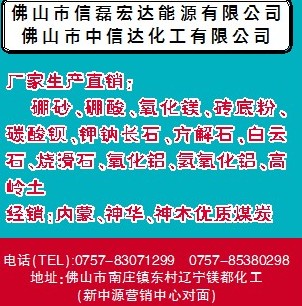厂家生产直销:硼砂、硼酸、氧化镁、砖底粉、碳酸钡、钾钠长石、方解石、白云石、烧滑石、氧化铝、氢氧化铝、高岭土经销:内蒙、神华、神木优质煤炭