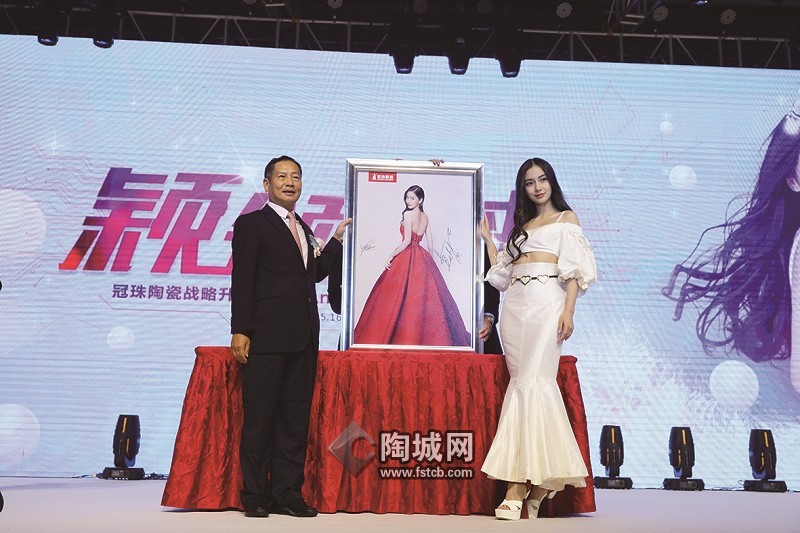随后,新明珠集团董事长叶德林与冠珠代言人Angelababy进行签约仪式,共同按下手印,并在ba-by画像的瓷砖画上签名,把美好常留冠珠。
