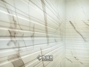 磨具的应用则能够让瓷砖实现更加明显、夸张的凹凸造型。通过干法布料的通体大理石瓷砖,表面也不再平面化,立体层次感十分分明。