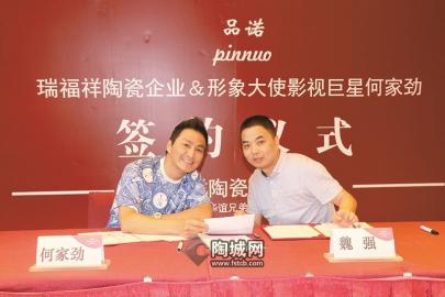 6月25日,广东惠州,瑞福祥陶瓷营销总经理魏强牵手影视演员何家劲,开启了该公司品牌营销的新阶段。事实上,这是今年产区明星代言的第二个案例。在一个月前,产区本土领军企业瑞阳集团签约影视演员唐国强,宣告了该集团并购新高峰陶瓷后开始发力品牌和终端建设。“产区发展已经到了做强品牌的阶段。”魏强表示,瑞福祥陶瓷因为这些年致力于瓷片的品质打造,在终端的口碑良好。随着竞争的加剧,客户对于企业的终端品牌建设的呼声越来越高,这是公司聘请明星代言的关键所在。第二个原因是配合公司全抛釉、金刚釉等大砖的推广,有一个明星放在纸箱上、挂在企业宣传物料上面,对客户的诱惑力会更大。