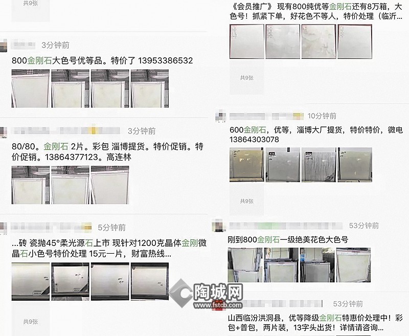 日前,记者发现淄博产区内大量金刚石瓷砖特价出售,曾经风靡的金刚石产品一时之间沦为“炮灰”,濒临淘汰。在各厂家发布的处理金刚石的信息中,金刚石瓷砖的最低售价已降至15元左右,相比于金刚石上市之初时的出厂价格,降幅达40%左右。