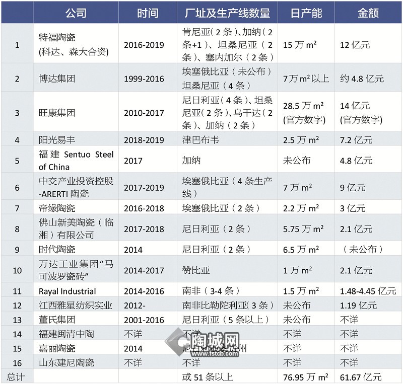除了特福、旺康、博达外,广东、福建、浙江温州、湖北等多地的企业也早已到非洲“淘金”,比如福建闽清的中陶、嘉丽和山东的建尼陶瓷等。