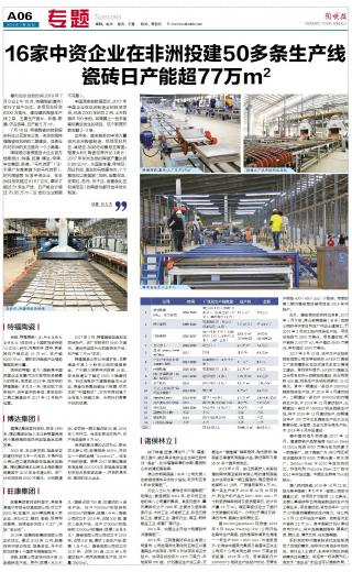 16家中资企业在非洲投建50多条生产线瓷砖日产能超77万m2