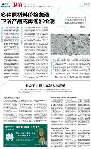 多种原材料价格急涨卫浴产品或再迎涨价潮